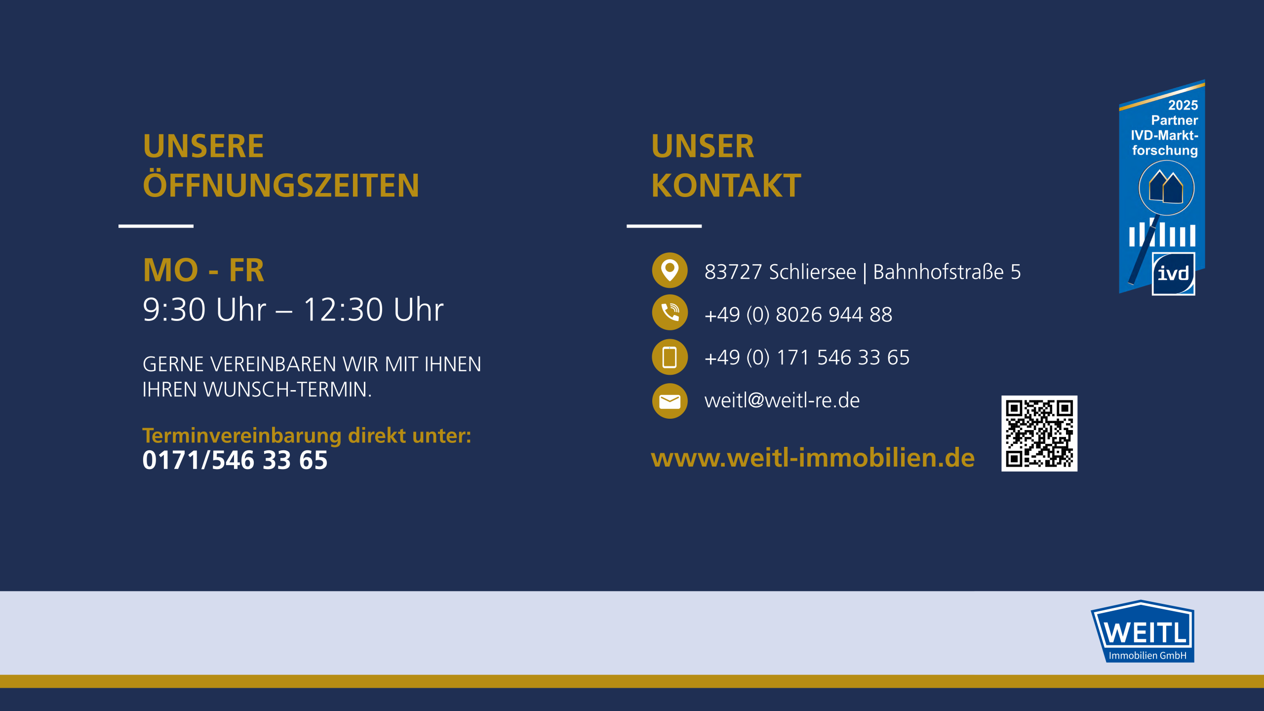 Als Einheimischer leistet der Geschäftsführer Stefan Weitl an unserem Stammsitz in Schliersee - seit über 35 Jahren - Qualitätsarbeit als garantiert zuverlässiger Partner bei Kauf und Verkauf, Vermietung und Verpachtung, als integre Vertrauensperson auch in schwierigsten Immobilienfragen.